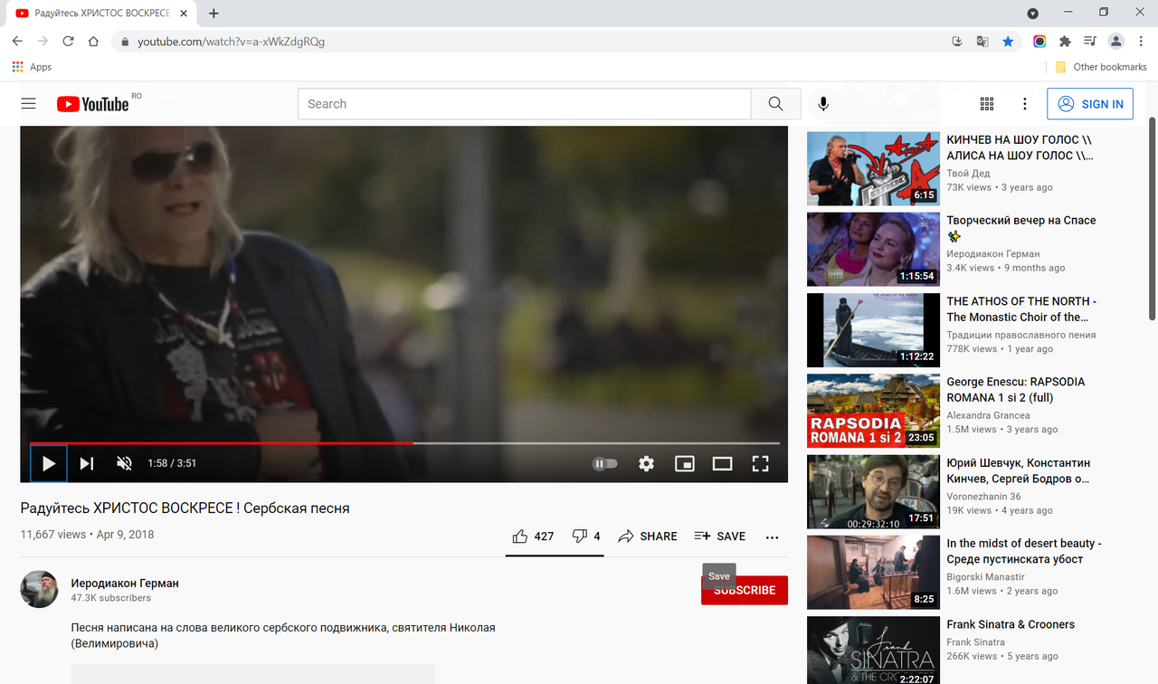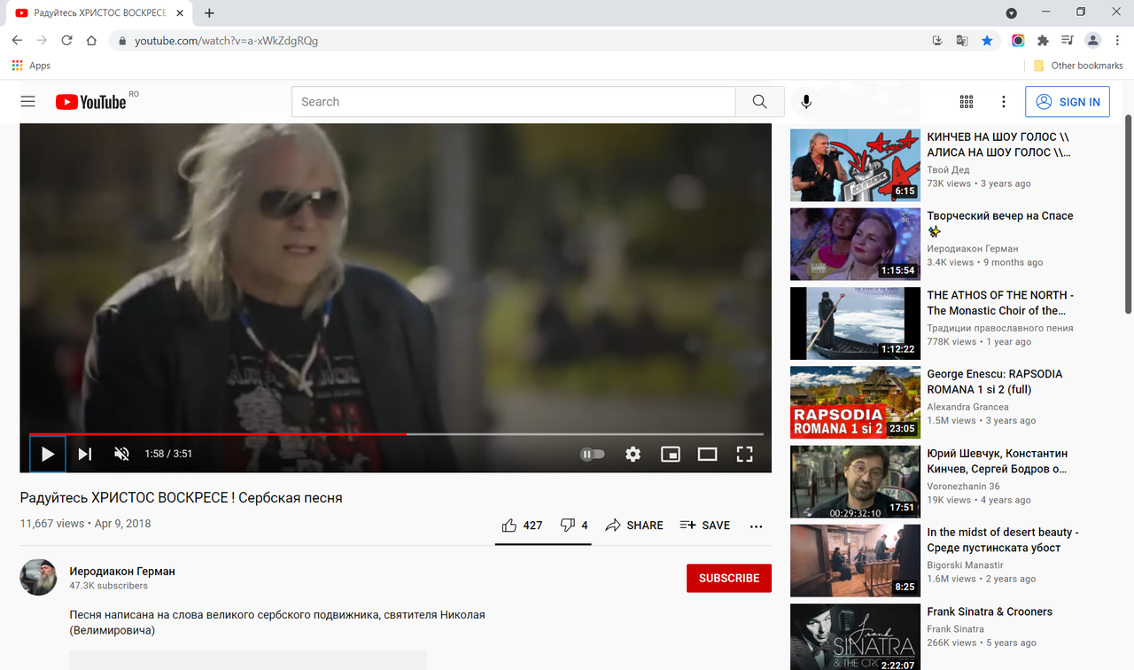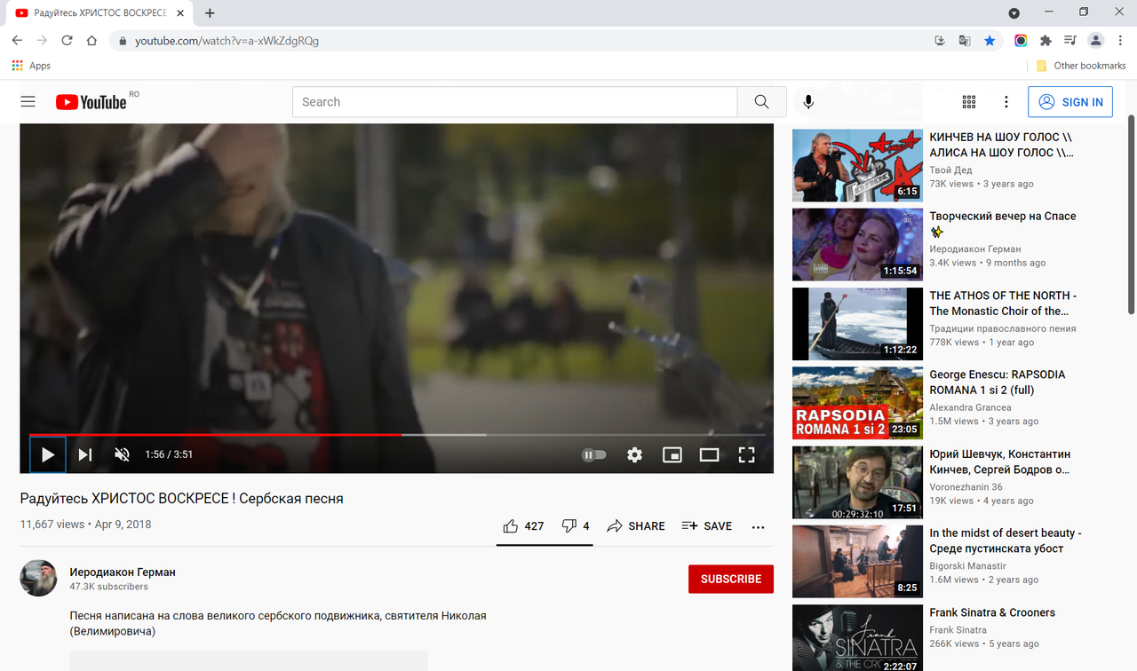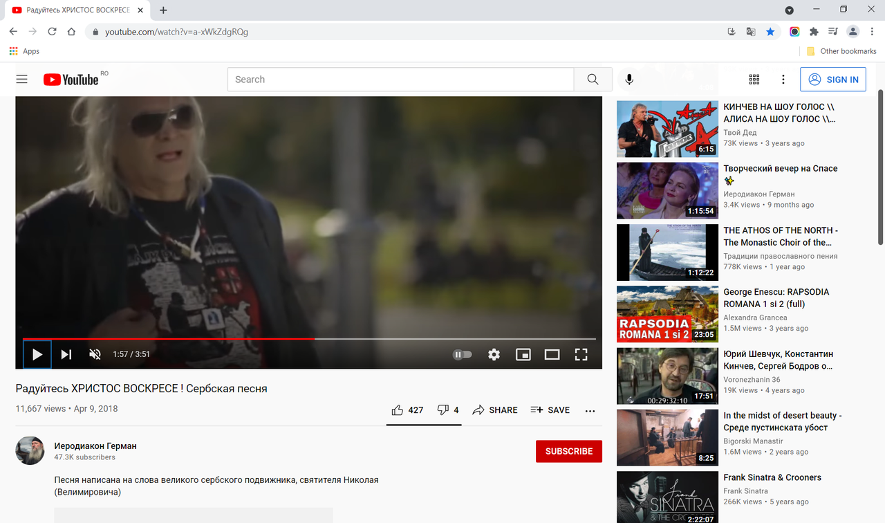 Gherman Ryabtzev pe canalul său de YouTube are postat următorul videoclip despre bucuria Învierii («Радуйтесь ХРИСТОС ВОСКРЕСЕ ! Сербская песня»):