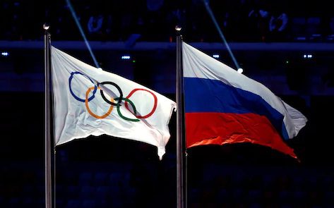 Steagul olimpic alături de cel al Rusiei. Foto: telegraph.co.uk