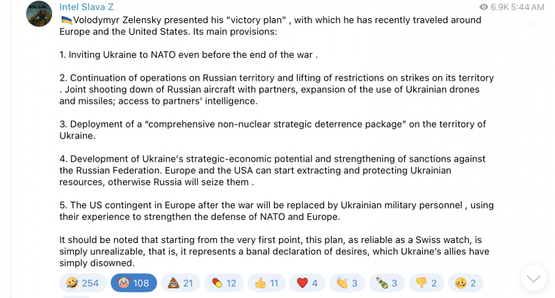 Zelenski a menționat că planul său conţine cinci puncte principale care se bazează pe aliaţii Kievului, inclusiv o invitaţie necondiţionată de a adera la NATO şi un sprijin specific pentru arme. Trei puncte sunt secrete.