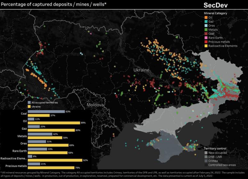 The Russian Federation has taken control of up to 70% of Ukraine’s mineral resources: the largest number of mineral resources are located in Donetsk, Dnipropetrovsk and Luhansk regions, Forbes calculated.