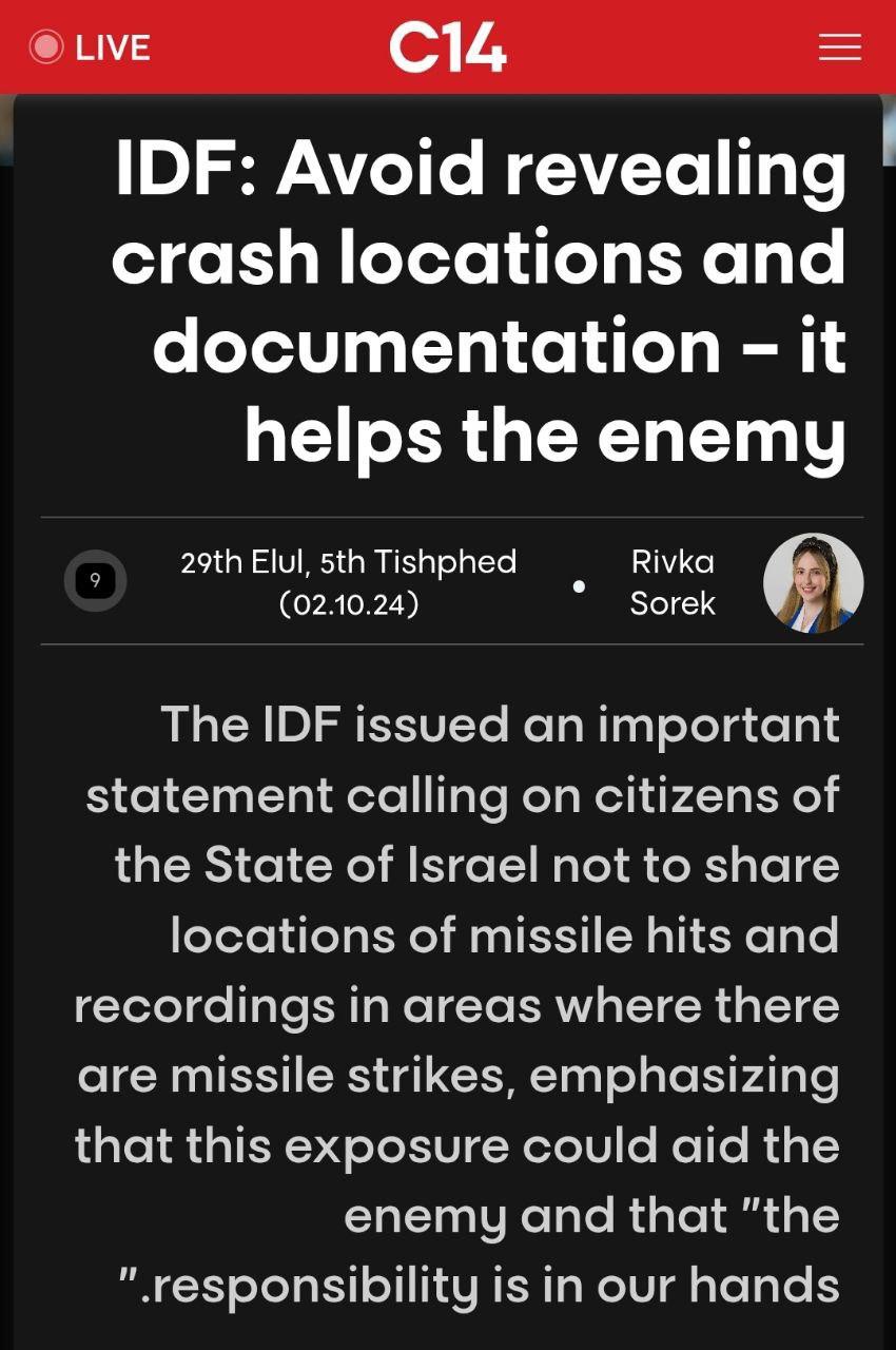 🔹The Israeli police warned that anyone who rejoices over Iranian missiles hitting Israel will be arrested, just as dozens of people have been arrested so far.